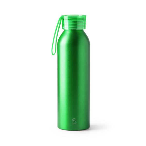 Бутылка из переработанного алюминия с крышкой и подходящим ремешком для переноски. Емкость 600 мл. Бутылка изготовлена из экологического материала, забота об окружающей среде.