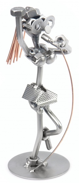 Металлические фигурки — ручная работа талантливого дизайнера из Германии. Нет такой области в жизни, что не вдохновила бы его на создание очередной металлической фигурки причудливой формы, отличительной особенностью которой является использование таких предметов, как болты, гайки, проволока, различные пластины и т. п. Необыкновенный стиль, который можно трактовать как Modern, Hi-Tech или даже Steampunk, сделали фигурки популярными во всём мире. Фигурка "Волшебный голос" станет прекрасным и стильным подарком человеку творческому, человеку, который любит петь.