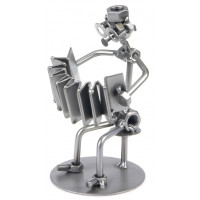 Металлические фигурки — ручная работа талантливого дизайнера из Германии. Нет такой области в жизни, что не вдохновила бы его на создание очередной металлической фигурки причудливой формы, отличительной особенностью которой является использование таких предметов, как болты, гайки, проволока, различные пластины и т. п. Необыкновенный стиль, который можно трактовать как Modern, Hi-Tech или даже Steampunk, сделали фигурки популярными во всём мире. Фигурка "Баянист-виртуоз" станет отличным подарком вашим друзьям и коллегам музыкантам.