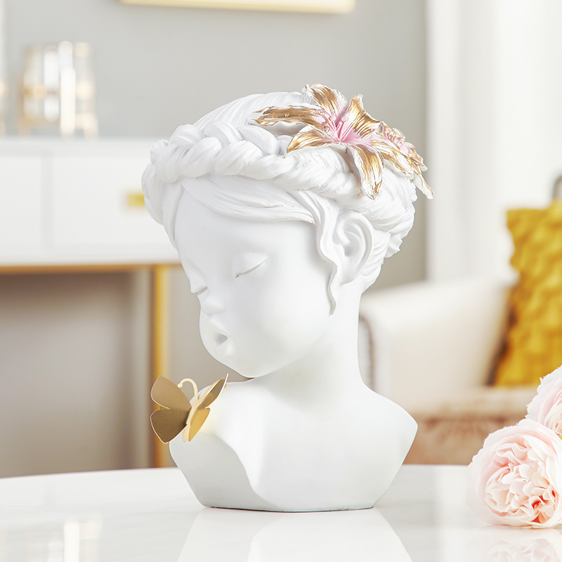 Статуэтка "Бюст ребенка с бабочкой" — это изящная скульптура, изображающая юного ребенка, наблюдающего за бабочкой. Эта статуэтка символизирует невинность, чистоту и радость открытия мира. Ее нежный дизайн отлично подойдет для украшения интерьера дома или в качестве подарка, вызывающего теплые чувства и создающего уютную атмосферу.