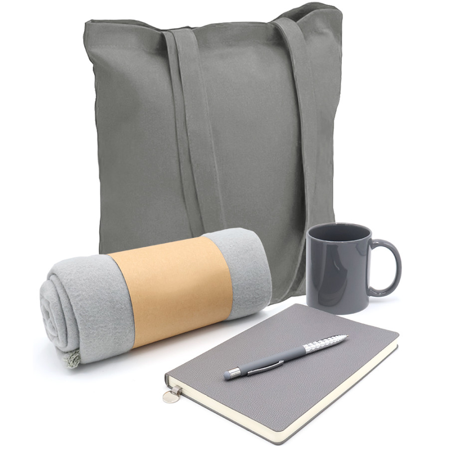 Подарочный набор "Тепло и вдохновение" — это уютное дополнение сумбурным будням. Удобная хозяйственная сумка готова сопровождать вас в каждодневных приключениях, а мягкий плед окутывает теплом, словно объятие близкого человека. Ручка поможет запечатлеть ваши мысли на страницах ежедневника, а кружка станет верным спутником в моменты уединения с книгой или горячим напитком.