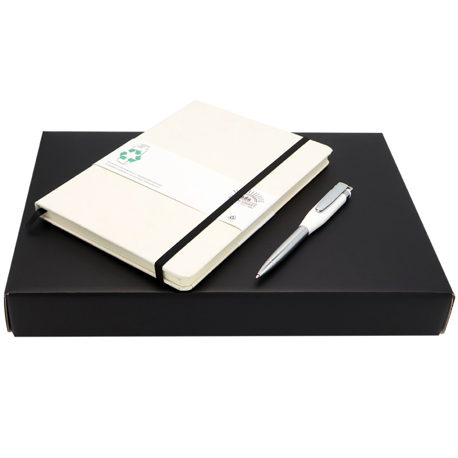 "Fantazy stream" — Подарочный набор в элегантной цветной коробке черного цвета с конструкцией крышка-дно. Внутри расположен ложемент, специально разработанный для надежного и аккуратного размещения всех элементов набора. В набор входят стильный ежедневник с плотной обложкой (арт. 51013. 02) и металлическая ручка с флэшкой на 64GB (арт1043. 01), идеально дополняющая комплект. Ежедневник имеет высококачественную обложку и удобный формат для записи важных дел и заметок, а ручка c флешкjq сочетает в себе элегантный дизайн и практичную функцию хранения цифровой информации. Такой комплект станет идеальным подарком для деловых людей, ценящих сочетание классики и современных технологий.