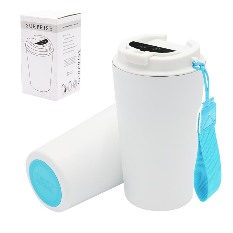 Термокружка Surprise To Go с индикатором, белая/бирюзовая