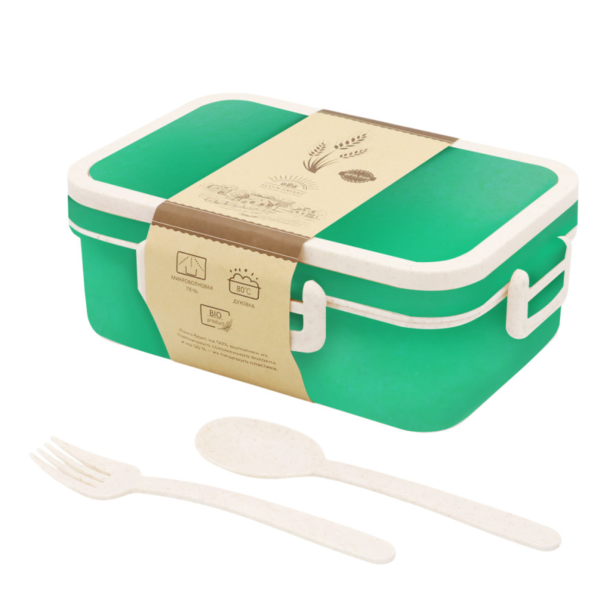 Ланчбокс (контейнер для еды) Inar из пшеничного волокна, зелёный.