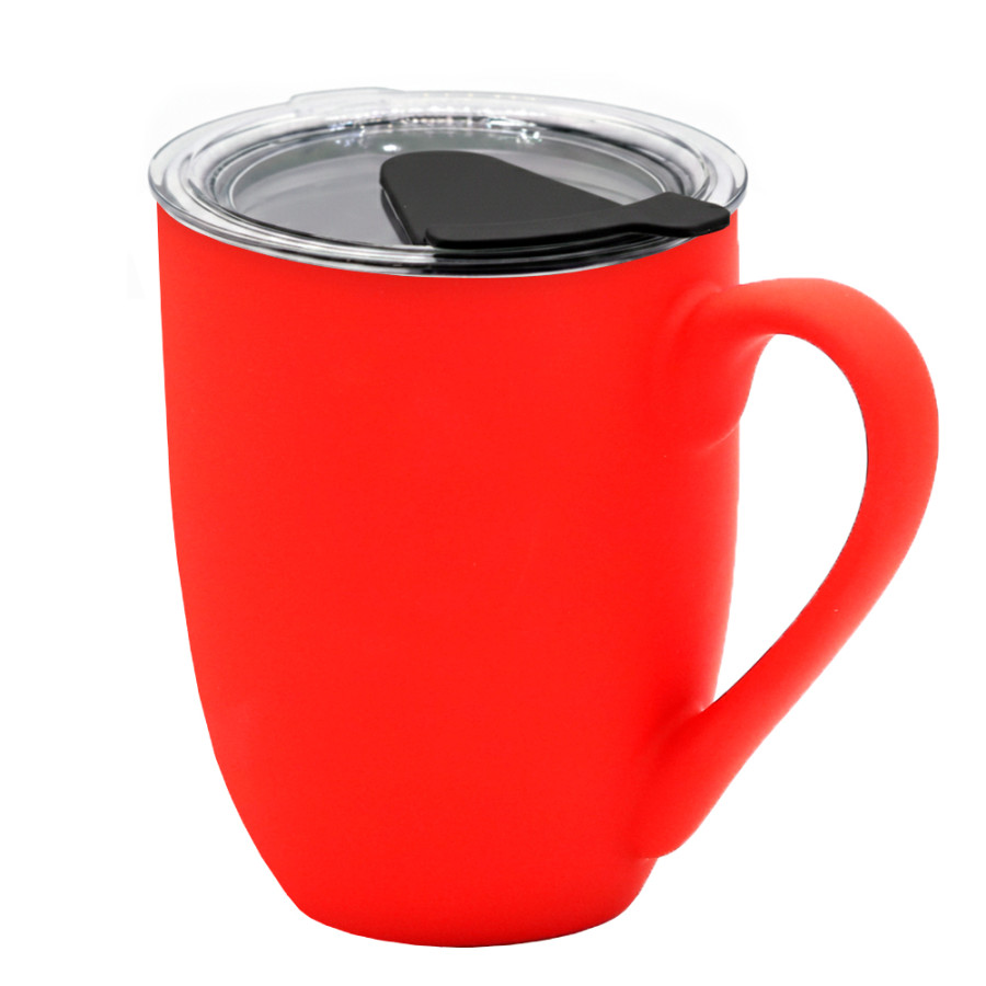 Кружка с крышкой Velvet Duo, софт-тач, красная/чёрная