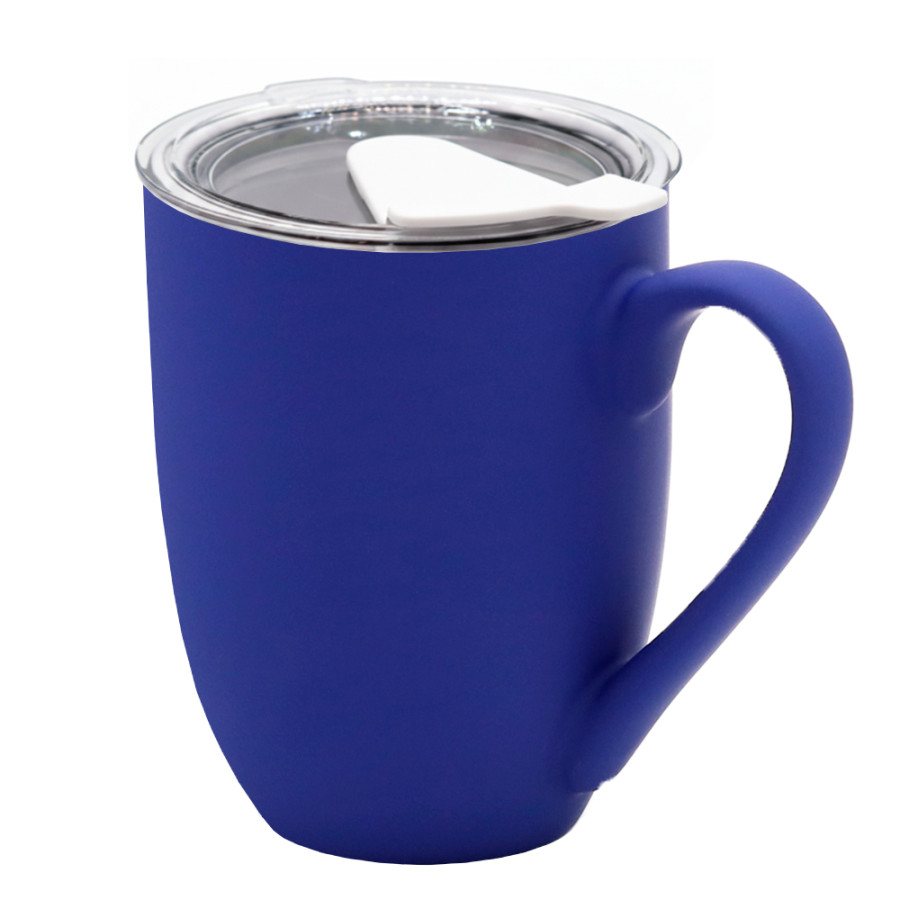 Кружка с крышкой Velvet Duo, софт-тач, тёмно-синяя/белая