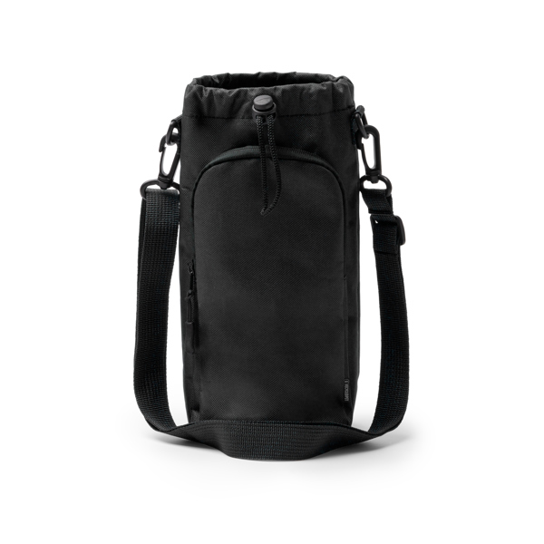 Сумка на плечо для бутылок объемом до 2, 5 л из RPET 600D с регулируемой застежкой на кулиске. Большой внешний карман с широким отверстием и застежкой-молнией в цвете, соответствующем корпусу, с черной застежкой-молнией. Имеет регулируемый ремень с креплениями для транспортировки, который снимается благодаря встроенному карабину. Внутренняя подкладка делает ее более прочной и долговечной.