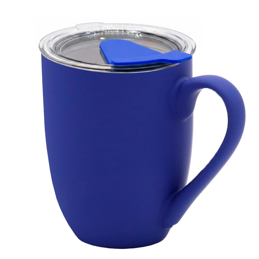 Кружка с крышкой Velvet Duo, софт-тач, тёмно-синяя