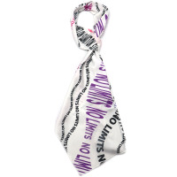Полноцветная печать по всей поверхности от шва до шва с одной стороны. Возможны любые оттенки по CMYK: логотипы, надписи и разнообразные принты. Прохождение красок на изнаночную сторону зависит от плотности и структуры материала (яркость от 30 до 80%). Французская косынка – это обычный шейный платок, который можно завязать как минимум 15 способами. Края обработаны микрооверлоком (закруткой), ширина шва 2-3мм.