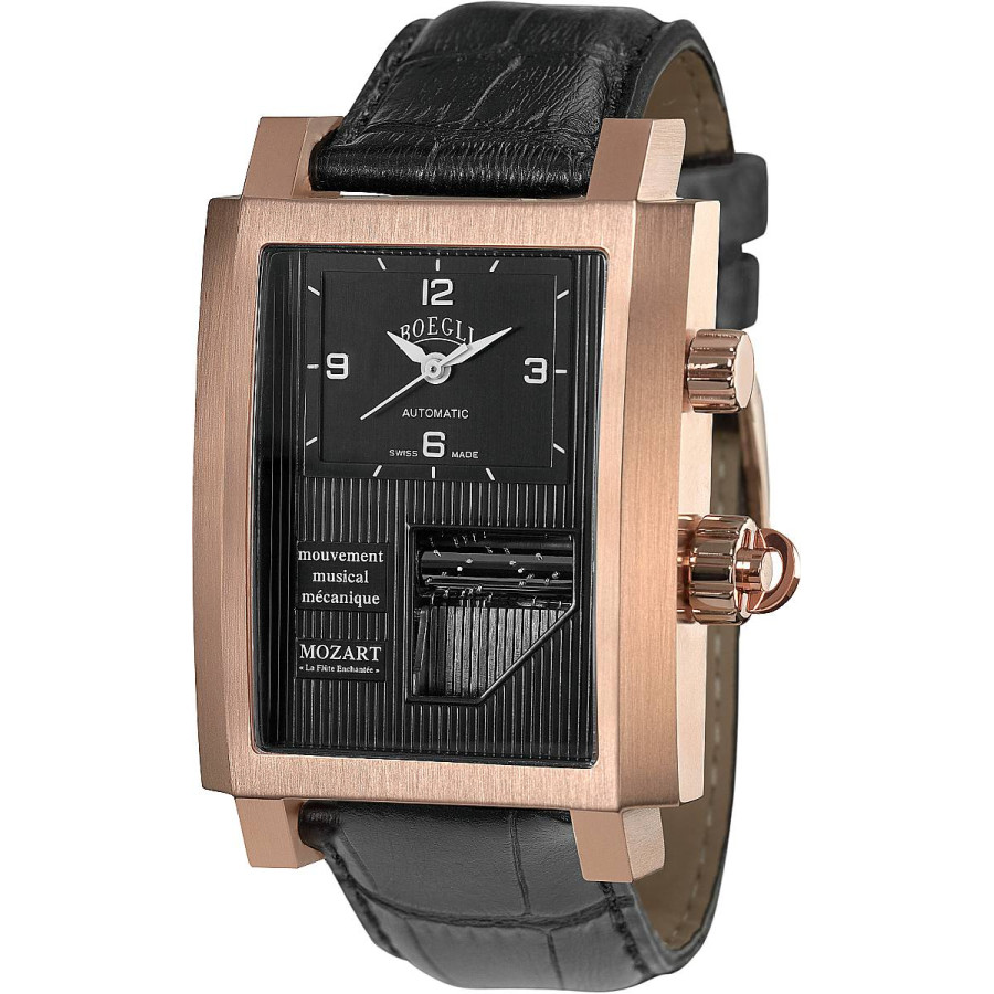 Механические часы, усложненные дополнительными функциями, в последнее время особенно актуальны. Тем более ценны часы, имеющие набор уникальных функций. Несколько лет назад швейцарская марка Boegli заявила о разработке первых механических наручных часов, усложненных функцией будильника и музыкальной мелодией. Великий эксперимент часовых мастеров завершился триумфальным выходом серии первых и единственных в мире наручных часов с музыкальным механизмом, играющий в назначенное время сложные мелодии Моцарта и Вивальди.