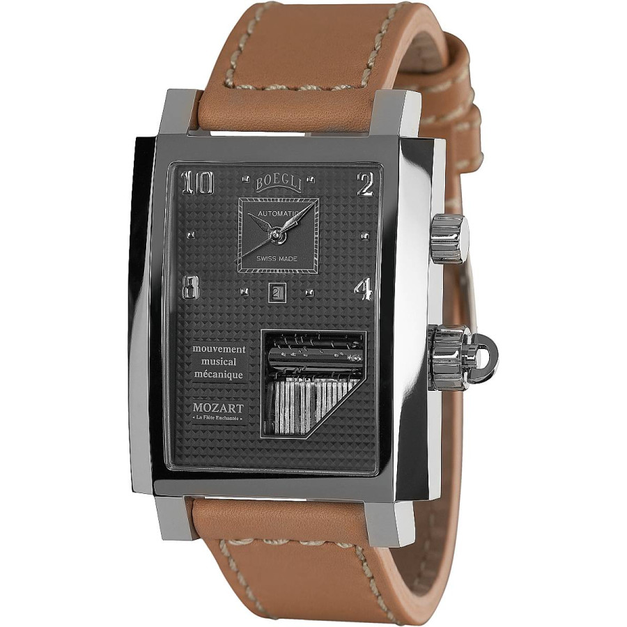Механические часы, усложненные дополнительными функциями, в последнее время особенно актуальны. Тем более ценны часы, имеющие набор уникальных функций. Несколько лет назад швейцарская марка Boegli заявила о разработке первых механических наручных часов, усложненных функцией будильника и музыкальной мелодией. Великий эксперимент часовых мастеров завершился триумфальным выходом серии первых и единственных в мире наручных часов с музыкальным механизмом, играющий в назначенное время сложные мелодии Моцарта и Вивальди.