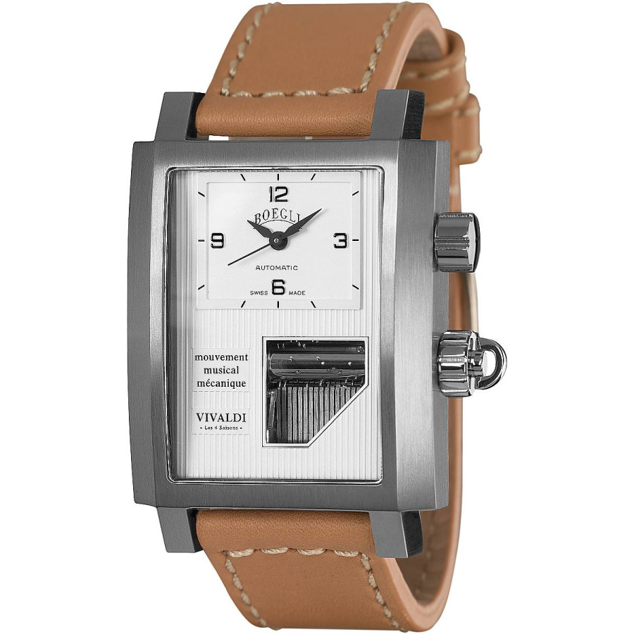 Механические часы, усложненные дополнительными функциями, в последнее время особенно актуальны. Тем более ценны часы, имеющие набор уникальных функций. Несколько лет назад швейцарская марка Boegli заявила о разработке первых механических наручных часов, усложненных функцией будильника и музыкальной мелодией. Великий эксперимент часовых мастеров завершился триумфальным выходом серии первых и единственных в мире наручных часов с музыкальным механизмом, играющий в назначенное время сложные мелодии Моцарта и Вивальди.