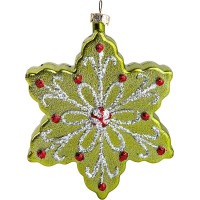 С каждым днем Новый Год все ближе. Пора уже всерьез задуматься о празднике, а именно об украшении елки. Если вы решили обновить ассортимент елочных украшений, то в нашем интернет магазине вы найдете много новинок! Например, елочное украшение "Снежинка" Mister Christmas зеленого цвета. Эта снежинка с матовым текстурным покрытием будет оригинально смотреться на искусственном новогоднем дереве нестандартного цвета, например, на красном или серебряном. Хотя и на обычной зеленой елочке оно будет заметно выделяться благодаря своему оформлению. Игрушка, размером 10х4х12 см, украшена белым узором, напоминающим иней. Дополняют снежинку надежное крепление, за счёт которого игрушка фиксируется на елке. Елочное украшение сделано из качественного пластика, поэтому при случайном падении с еловой ветки оно не разобьется. Так же этот материал признан абсолютно безопасным для здоровья. "Снежинка" Mister Christmas зеленого цвета продается в красивой новогодней упаковке. Она станет чудесным подарком не только себе, но и родственникам, друзьям и коллегам.