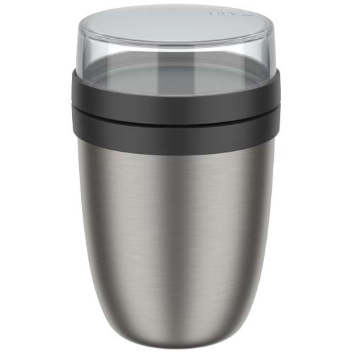 Герметичный пищевой контейнер с двумя раздельными отделениями, позволяющими хранить различные продукты отдельно друг от друга. Оба контейнера имеют отдельную крышку, чтобы ингредиенты не смешивались. Еда останется горячей в течение 6-8 часов и холодной в течение 12 часов. Объем верхнего прозрачного контейнера составляет 200 мл. Емкость нижнего контейнера составляет 500 мл. Изготовлен из прочного материала, внешняя часть контейнера остается холодной и сухой. Рекомендуется ручная мойка. Пластиковые части крышки можно мыть в посудомоечной машине.