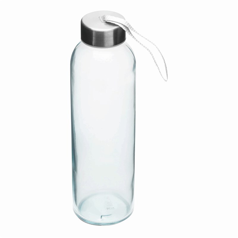 Стеклянная бутылка для питья TAKE SMART: с навинчивающейся крышкой из нержавеющей стали с силиконовым уплотнительным кольцом и ремешком для надевания на руку, вместимость около 500 мл. , в белой коробке