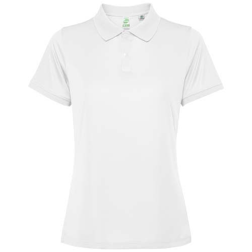 Приталенная рубашка-поло с коротким рукавом для женщин. Усиленные закрытые швы на внутренней части воротника. Манжеты и талия в рубчик 1х1. Боковые швы. Планка с тремя пуговицами и разрезами по бокам.