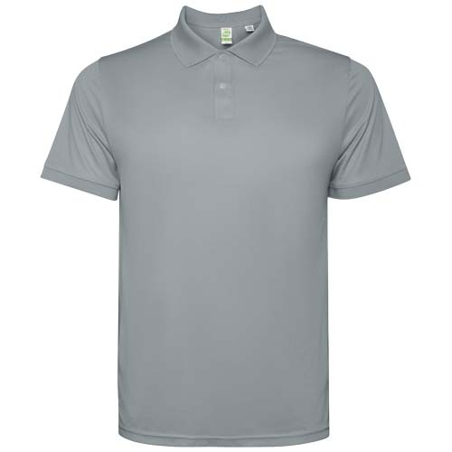 Мужская рубашка-поло с коротким рукавом. Усиленные закрытые швы на внутренней части воротника. Манжеты и талия в рубчик 1х1. Боковые швы. Планка с тремя пуговицами и разрезами по бокам.