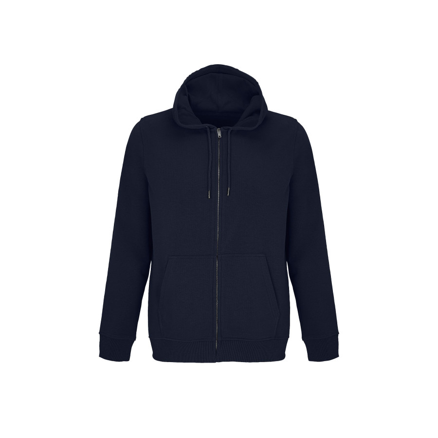 Шитый трикотаж, Втачные рукава, Манжеты и нижняя часть на трикотажной резинке 2x2, Карман-кенгуру, Капюшон на подкладке из джерси, Завязки с металлическими наконечниками и люверсами, Основная застежка на молнии под планкой, Металлические молния и бегунок, Полумесяц и окантовка из джерси на горловине