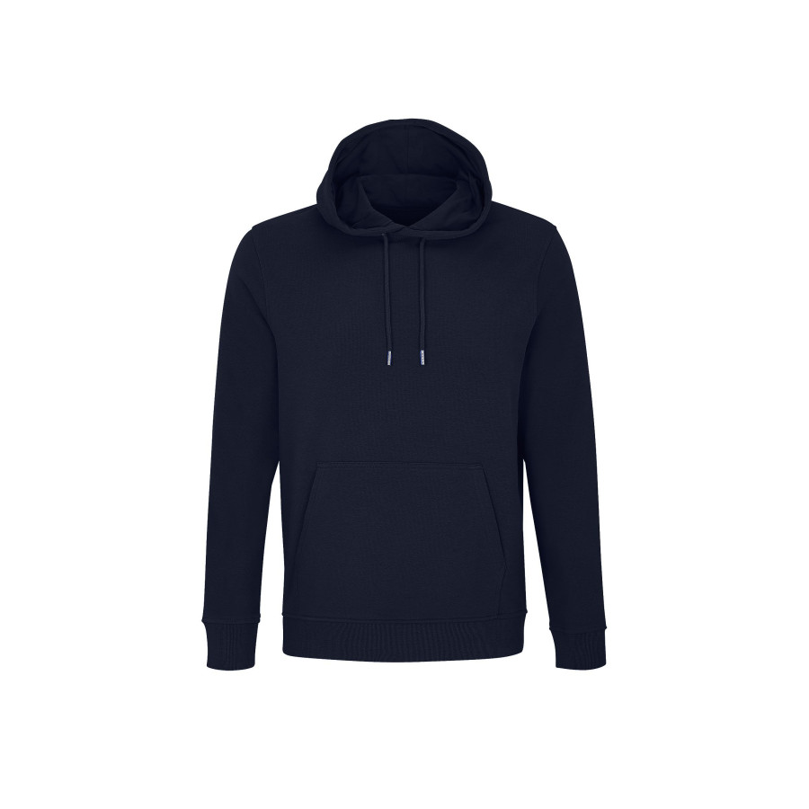 Шитый трикотаж, Втачные рукава, Манжеты и нижняя часть на трикотажной резинке 2x2, Карман-кенгуру, Полумесяц и окантовка из джерси на горловине, Капюшон на подкладке из джерси, Завязки с металлическими наконечниками и люверсами