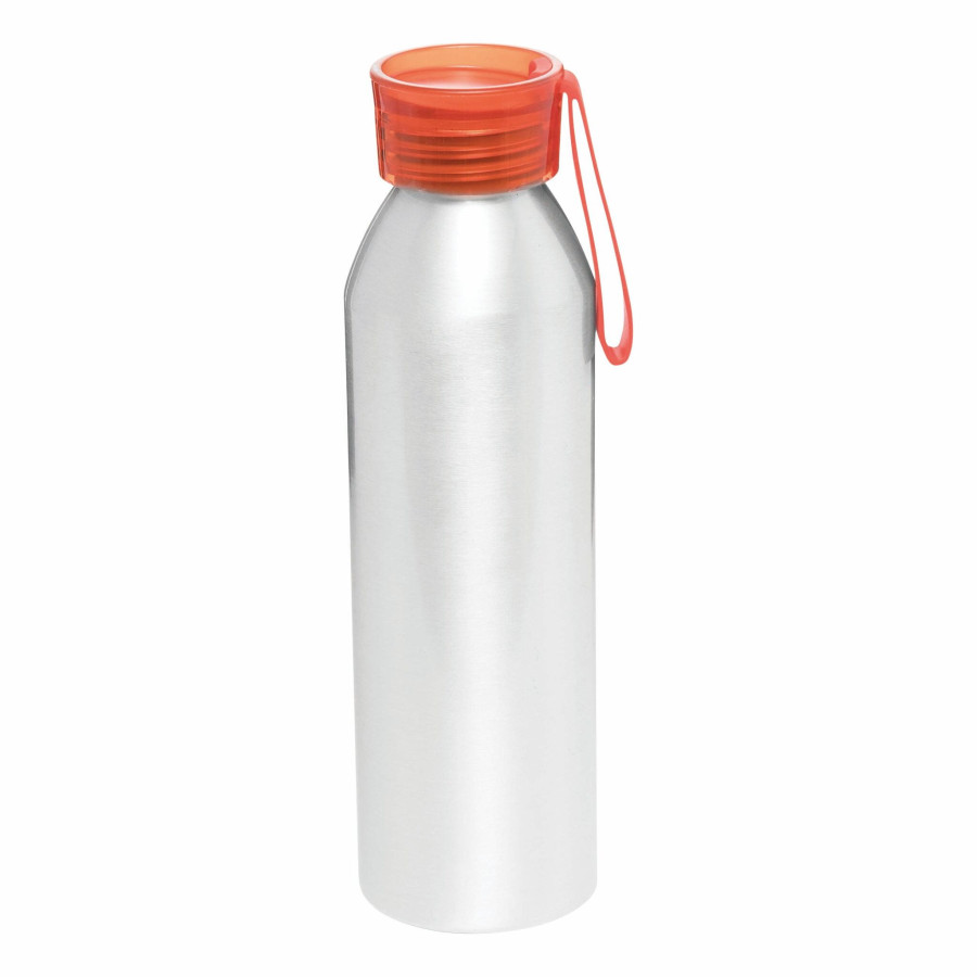 Алюминиевая бутылка COLOURED: цветная закручивающаяся пластиковая крышка, силиконовая петля на руку, объем: около 650 мл.