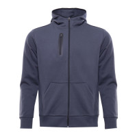 Толстовка прямого силуэта с капюшоном, переходящим в воротник-стойку, глубокими накладными карманами, прорезным нагрудным карманом и застежкой на молнию. Модель дополнена плотными манжетами на рукавах и по низу изделия, что повышает её практичность и защищает от проникновения холода.