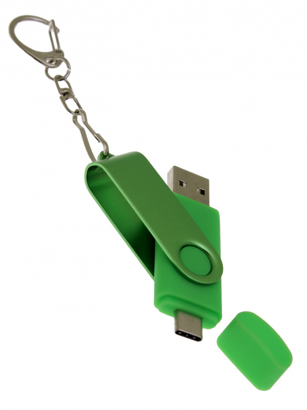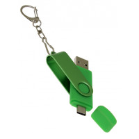 OTG_2in1_TC_031 Флеш-накопитель 2 в 1 поворотный механизм, c дополнительным разъемом Type-C с одноцветным металлическим клипом, зеленый.