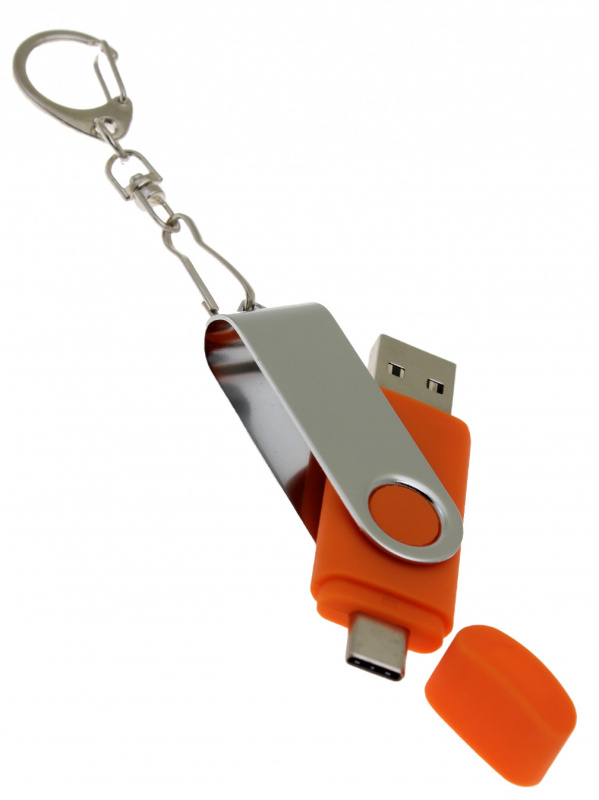 OTG_2in1_TC_030 Флеш-накопитель поворотный механизм, c дополнительным разъемом Type-C, оранжевый.