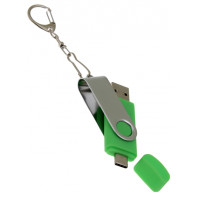 OTG_2in1_TC_030 Флеш-накопитель поворотный механизм, c дополнительным разъемом Type-C, зеленый.