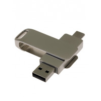 OTG235_TC Флеш-накопитель поворотный механизм 2 в 1, c дополнительным разъемом Type-C с одноцветным металлическим клипом, серебро.