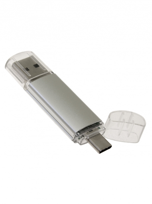 OTG_2in1_TC_001 Флеш-накопитель с дополнительным разъемом Type-C, серебро.