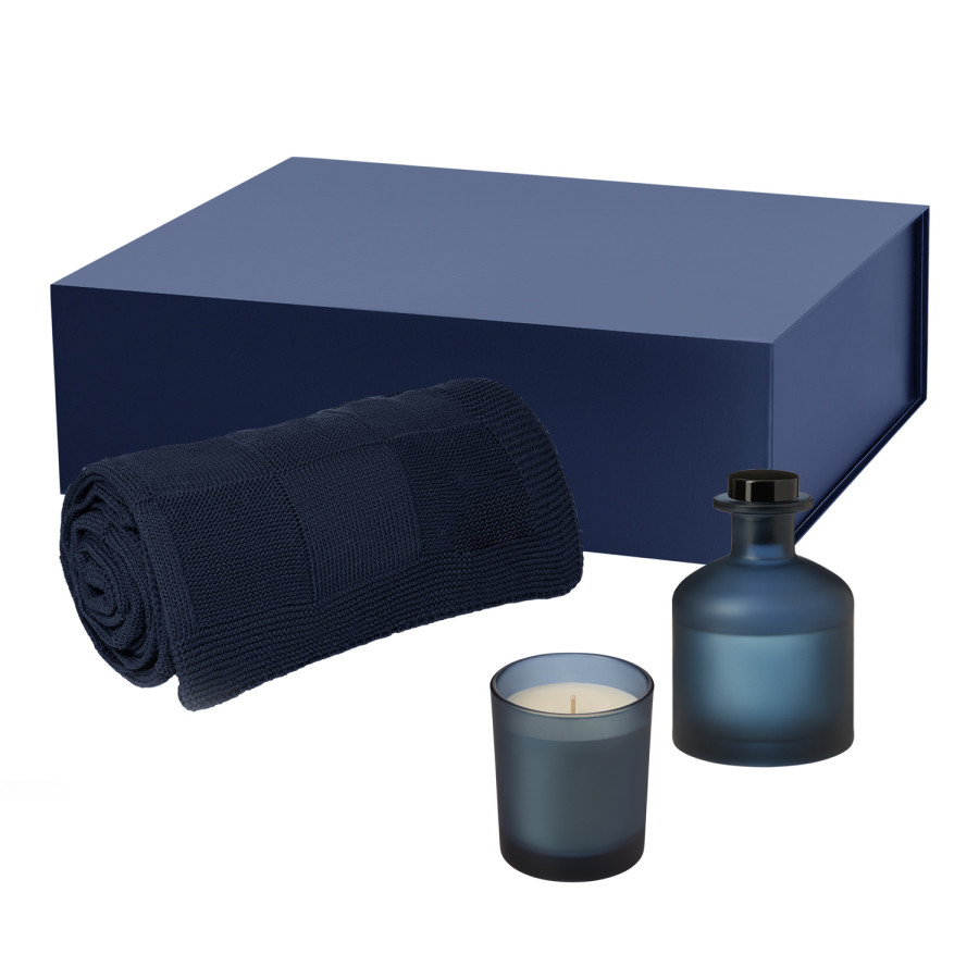 Подарочный набор Enigma, Cella, синий (свеча, диффузор, плед)