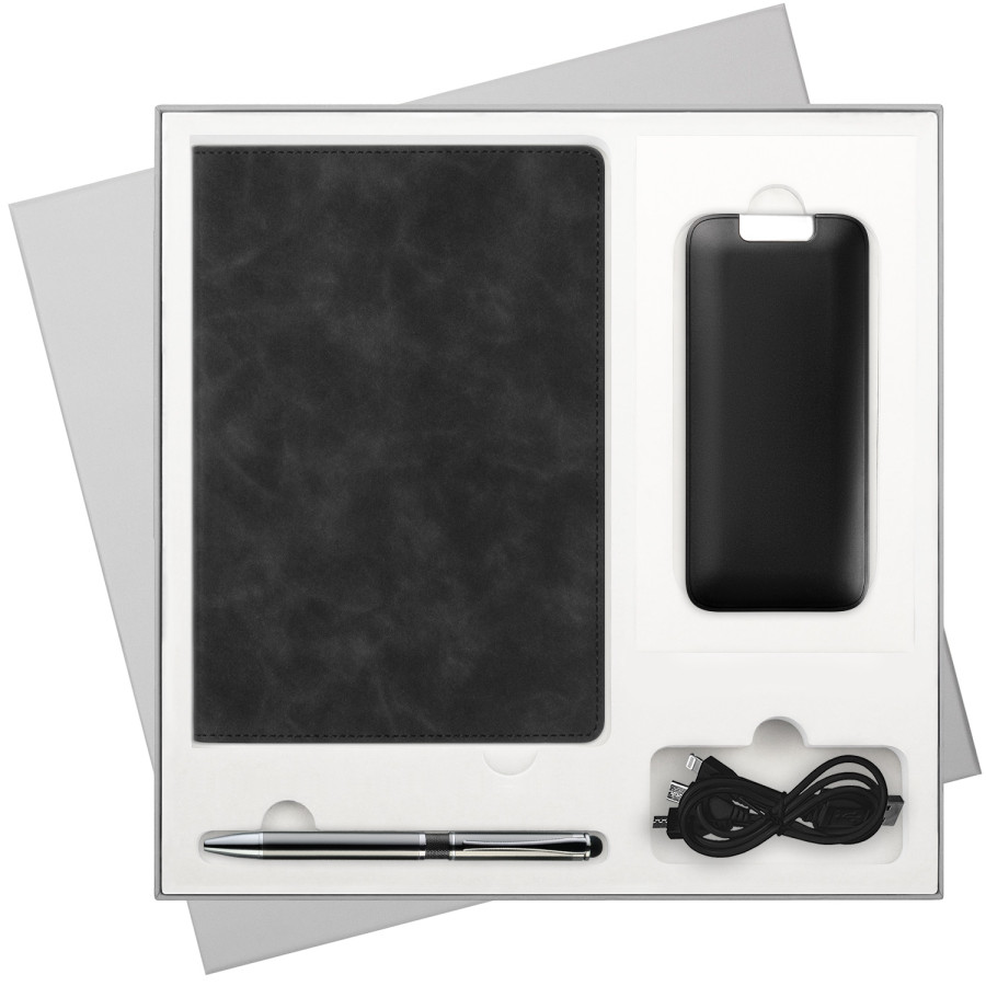 Подарочный набор Verona, черный (ежедневник, ручка, аккумулятор)