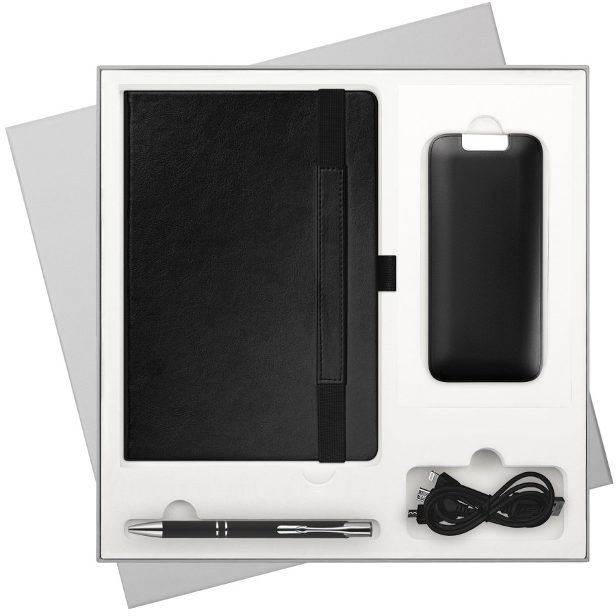 Подарочный набор Galaxy, черный (ежедневник, ручка, аккумулятор)