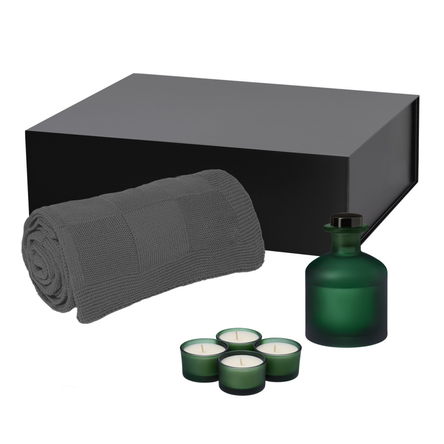 Подарочный набор Sento, Cella, зеленый (свеча, диффузор, плед)