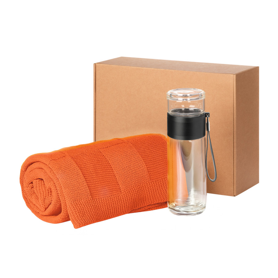 Подарочный набор Terso, Cella, оранжевый (плед, термобутылка)