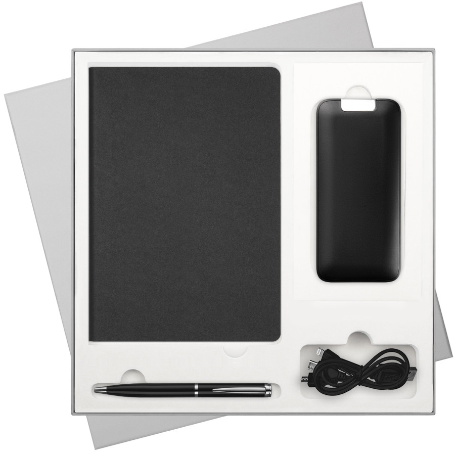 Подарочный набор Moon river, черный (ежедневник, ручка, аккумулятор)