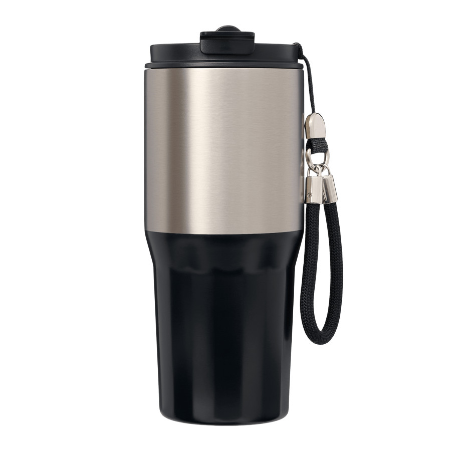 Внутренний слой из пищевой стали 304 марки, которая не впитывает запахи, не окисляется и сохраняет вкус напитка. Внешний корпус надежно защищен 201 сталью с комбинированным покрытием, где матовая текстура сочетается с гладким акцентом. В комплекте идет удобный, прочный и легко снимаемый ремешок, который превращает термокружку в идеальный аксессуар для активного образа жизни.