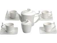 Белоснежный цвет и лаконичный дизайн делают сервиз уместным в любом интерьере — от классики до модерна. Комплектность: чайник 800 мл, сахарница, чашка 100 мл- 4шт, блюдце - 4шт
