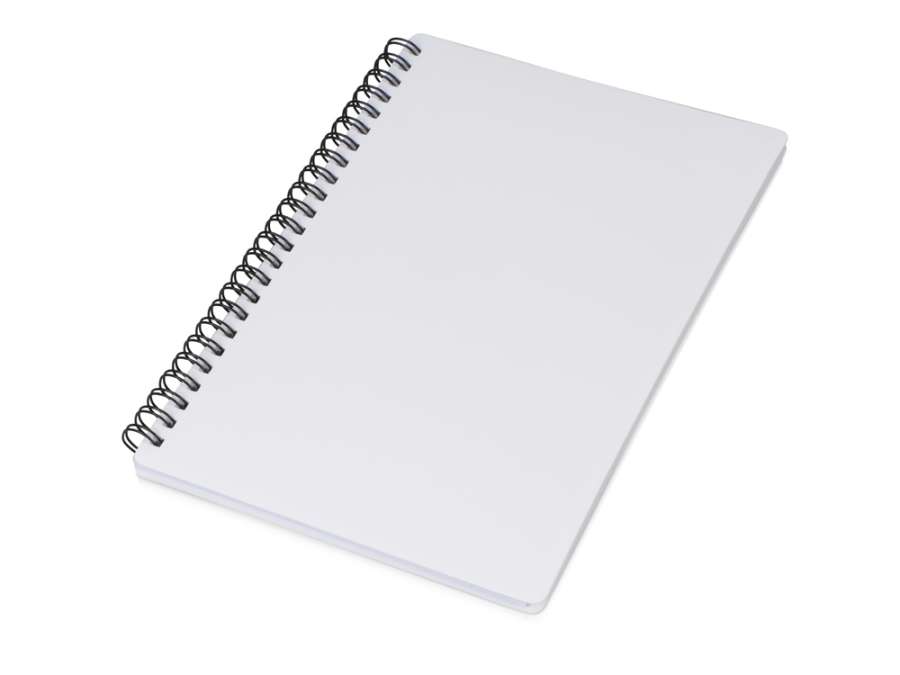 Блокнот в белой пластиковой обложке отлично подойдет для нанесения логотипа. Удобное крепление на спирали.