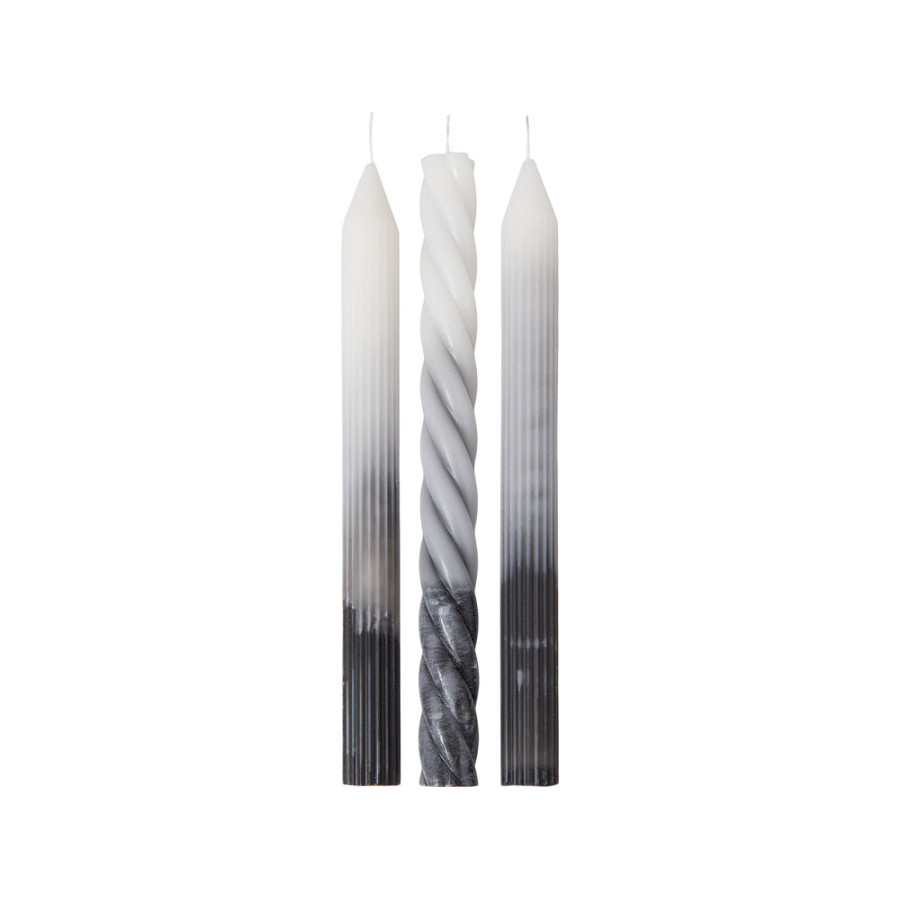 Набор стильных столовых свечей Flicker& Flow с изящным градиентным окрашиванием станет эффектным акцентом в сервировке или декоре интерьера. В комплект входят две свечи оригинальной изогнутой формы и одна — с гранями, придающими ей особую геометрию. Изделия не имеют аромата, что позволяет наслаждаться их мягким свечением без посторонних запахов. Такой набор подойдёт как для повседневного использования, так и для особых случаев, создавая атмосферу уюта и эстетики.