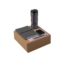 | Материал: | блокнот- искусственная кожа, бумага, ручка - металл с поверхностью soft-touch, термокружка - кружка- нержавеющая сталь, крышка- пластик, картхолдер - переработанный полиуретан, открытка - бумага, коробка- картон |