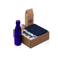 Подарочный набор с термобутылкой, блокнотом, ручкой и чаем, синий