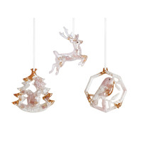 Елочные игрушки ( Снегирь+ Олень+ Ель) Розовый кварц