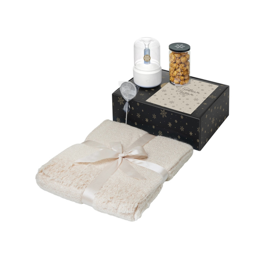 Подарочный набор с пледом, увлажнителем и попкорном, бежевый