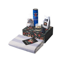 | Материал: | плед - 100% хлопок, мешок - нетканый материал (спанбонд), термос - нержавеющая cталь с покрытием soft-touch, открытка - бумага |