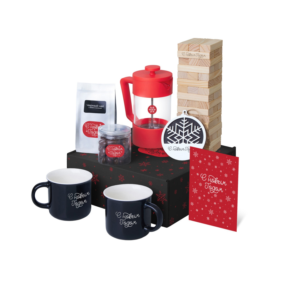 Подарочный набор c френчпрессом, кружками и чаем, красный
