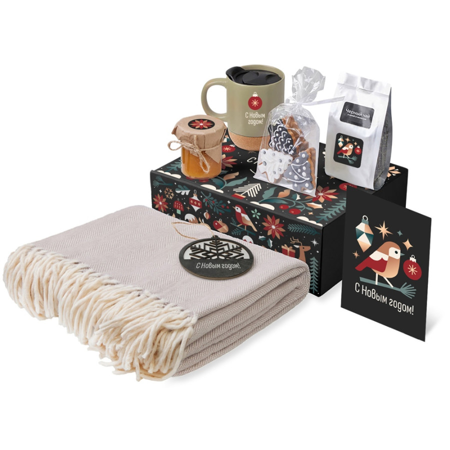 | Материал: | плед - 100% хлопок; кружка - керамика, пробка; подвеска - дерево; открытка - бумага |