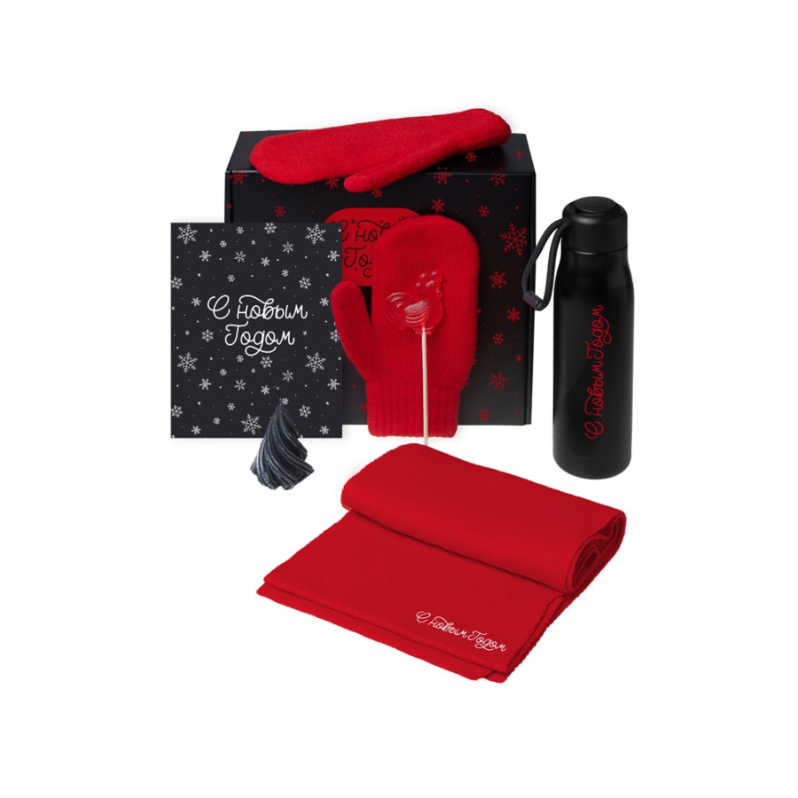 | Материал: | варежки - 100% акрил; шарф - 100% акрил; термос - нержавеющая сталь; открытка - бумага; мешок - нетканый материал |