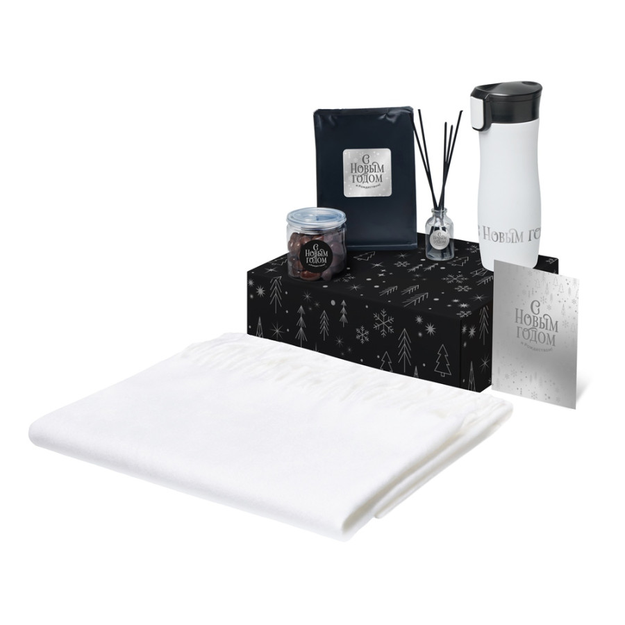 Подарочный набор с палантином и термокружкой, белый