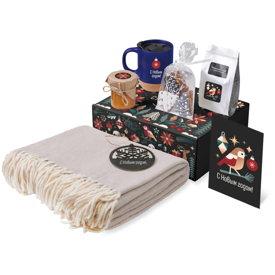 | Материал: | плед - 100% хлопок; кружка - керамика, пробка; подвеска - дерево; открытка - бумага |